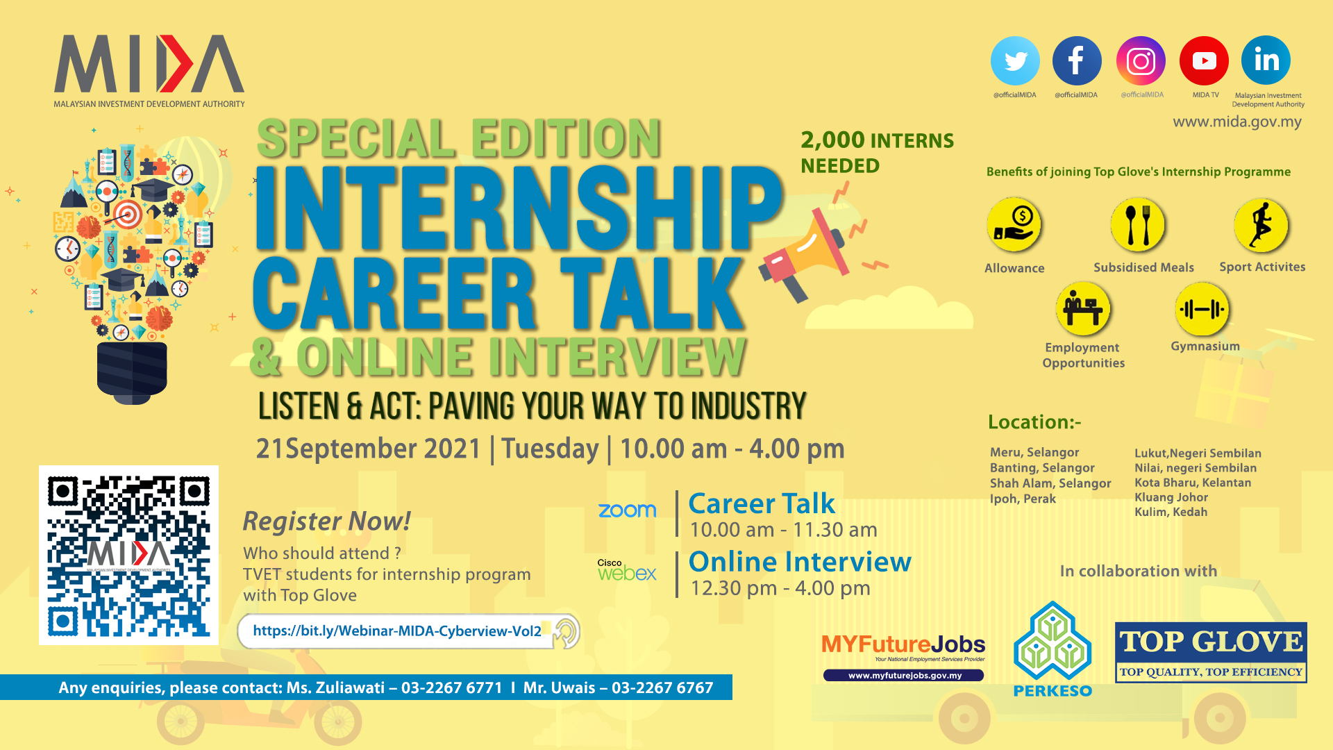 Special Edition Internship Career Talk Programme Online Interview With Top Glove Mida Malaysian Investment Development Authority